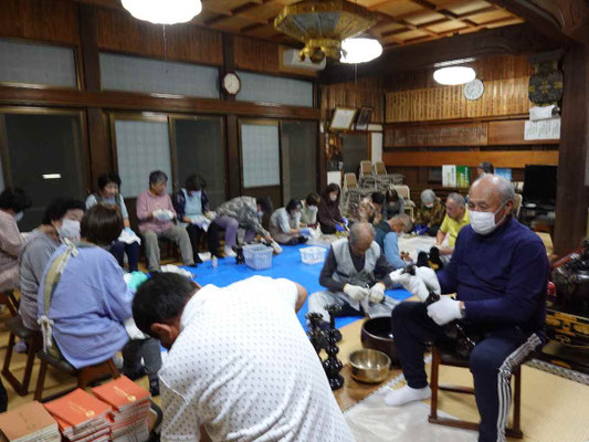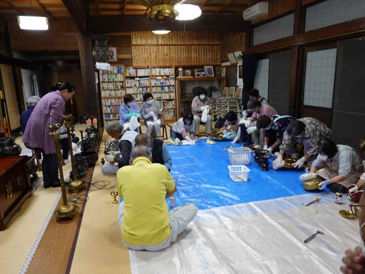 2週間後の報恩講法要に備えて仏具磨きを実施した。門徒総代はじめ多くの門徒の方が手伝ってくださった。年に一度の仏具磨きは門徒同士の交流会にもなっているように感じた。