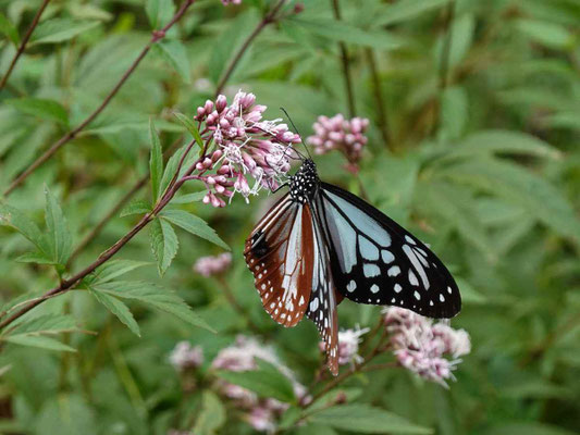 秋の深まりとともにアサギマダラの飛来が話題になっている。三重県美杉村(現津市)石名原のフジバカマにも飛来したと聞き、美しい姿に会いに行ってきた。こんな美しい蝶がなんと2,000kmもの旅をするという。驚きである。お寺の境内にも飛来を期待してフジバカマを植えている。もう少しフジバカマの株が増えると期待できるかも知れない。